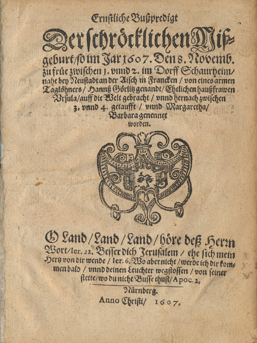 Ein Kuriosum ist eine Predigt des evangelischen Pfarrers Johannes Mergner aus dem Jahr 1607 mit dem ungewöhnlichen Titel „Ernstliche Bußpredigt der schröcklichen Mißgeburt“. Gemeint sind die siamesischen Zwillinge Margaretha und Barbara Görlitz, die am 8. November 1607 in Schauerheim bei Neustadt an der Aisch als Töchter eines armen Tagelöhners und seiner Frau zur Welt kamen. Pfarrer Mergner ermahnte daraufhin die dortige Pfarrgemeinde, die Fehlbildungen als Strafe und „Zornzeichen“ Gottes zu sehen und ihre Lebensführung zu bessern.